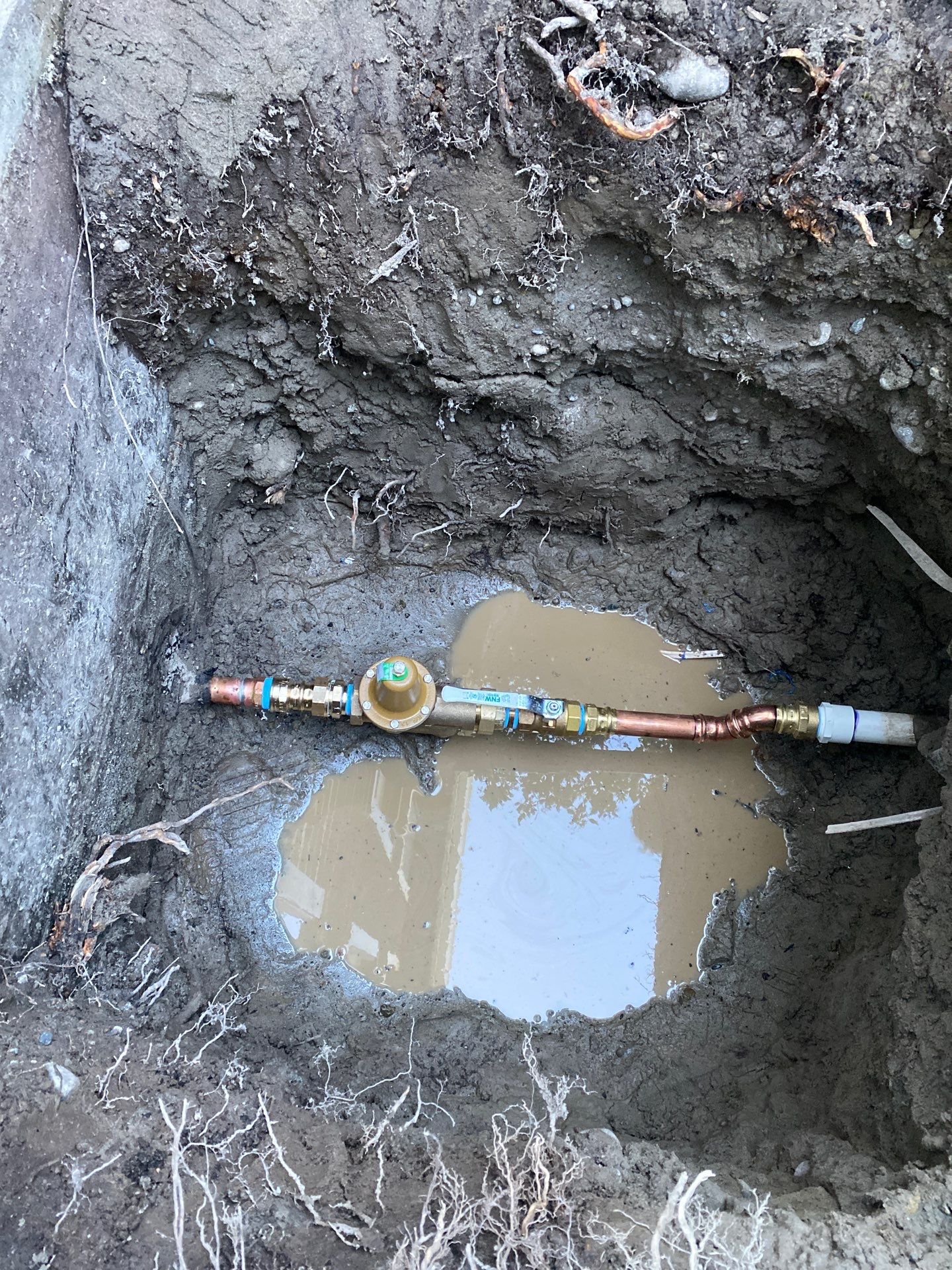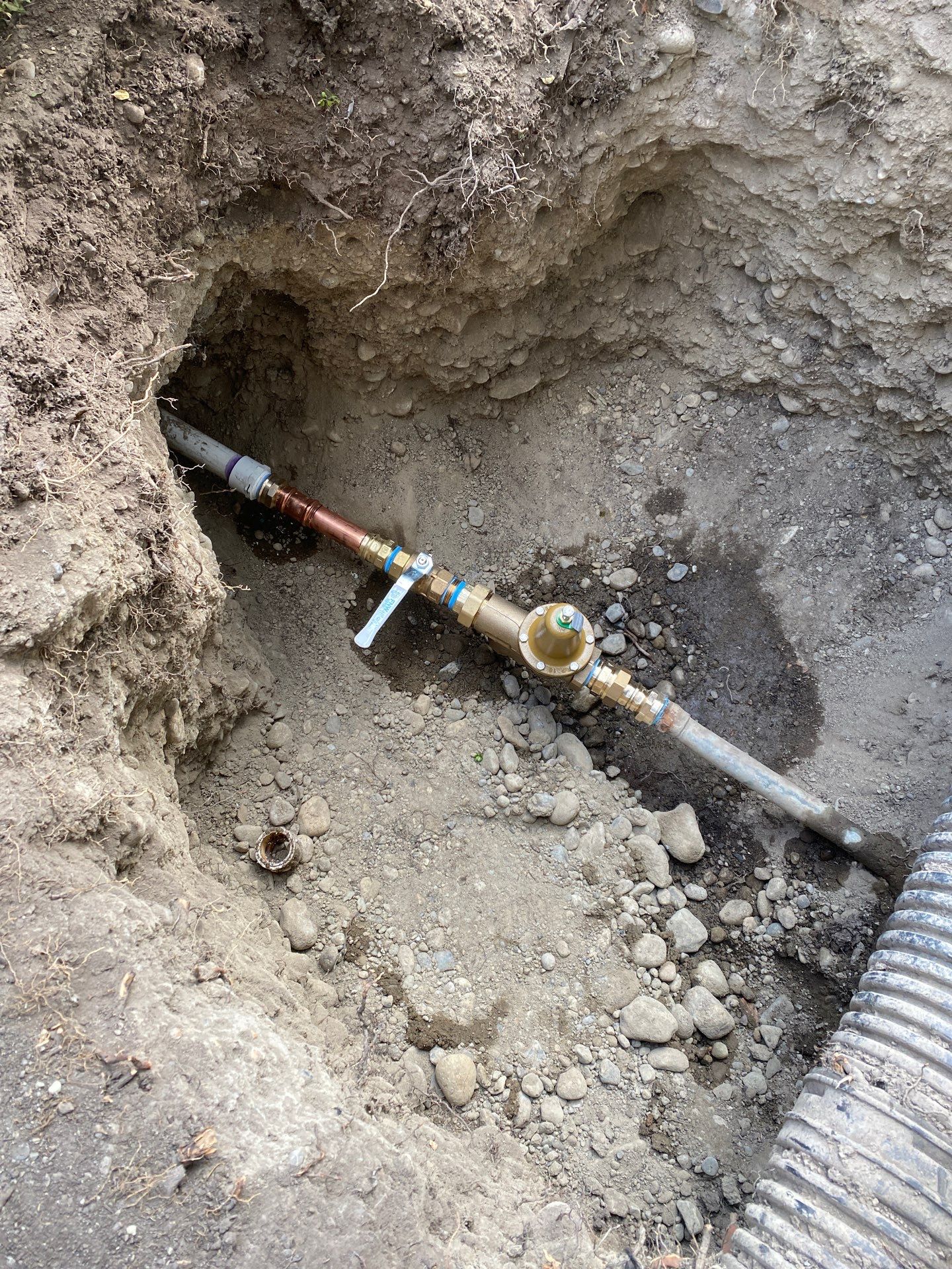 The shutoffs and PRVs for multiple apartment buildings in this Kirkland complex were beginning to fail due to age and scale build up inside the galvanized pipes. Replacing the shutoffs and PRVs restored their water flow back to proper levels.